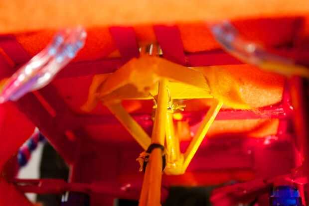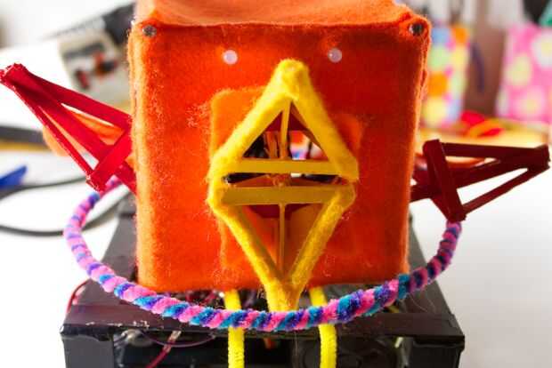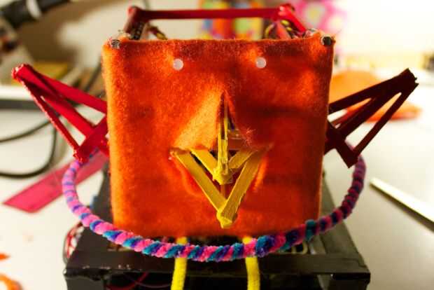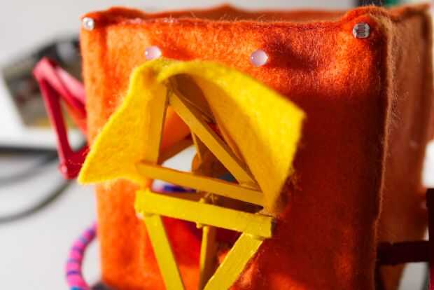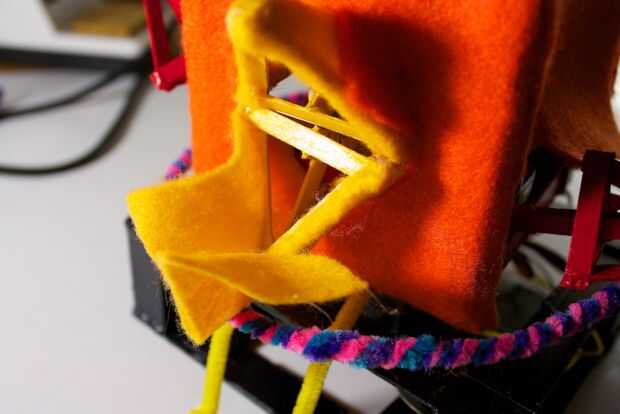 La cara posterior y superior es un enfoque similar. Sólo el borde superior se pega, así que podemos levantarla para revelar el funcionamiento interno de la RoboBrrd.