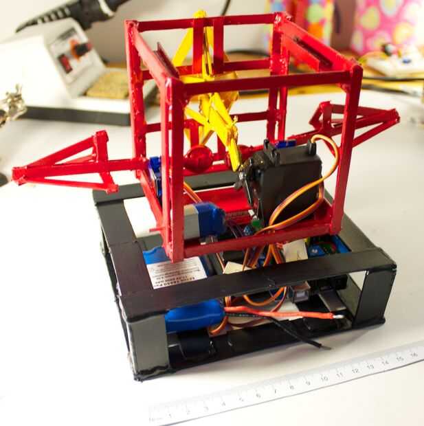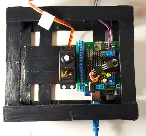 Coloque un pedazo de doble cerradura en la construcción de palo de paleta. En la cara inferior del RoboBrrd damos la otra pieza de doble cerradura. Esto nos permitirá ser capaces de despegar la estructura principal de RoboBrrd sin necesidad de desmontar todo.