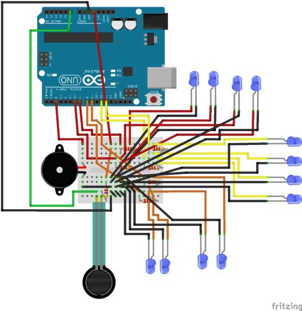 Es más fácil comenzar con el altavoz piezoeléctrico y el sensor de contacto. El altavoz piezoeléctrico está conectado al pin 2 y tierra y el sensor de contacto está conectado a 5v y A0. El sensor de contacto tiene una resistencia de ohm k 47 antes de él.