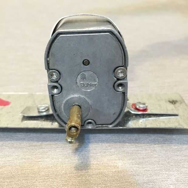 Cortar una placa rectangular de 10 x 5 cm y fijar el motorreductor con un puente de forma de U en él