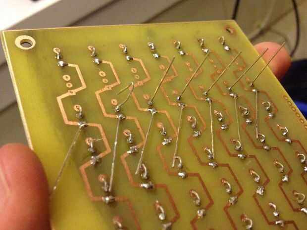 4) verificar que cada LED se suelda correctamente conectando todas las columnas a + 5V y atar todas las columnas a tierra.