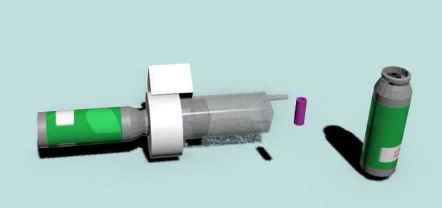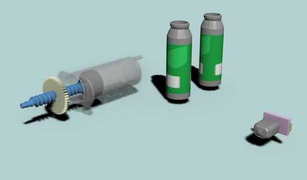 Esta parte un poco complicada, necesita componentes electrónicos y parte que pueden ser difíciles en una lata. proporcionar un inyección 50 ml. descartar vástago inyecciones y reemplazar con la varilla varilla larga con inyecciones, en la parte superior de la inyección de pares de engranajes camino mira en la imagen 3d 4-5. Enchufe la caja motor dc pequeño de material que conecta a la barra, me sale un motor dc pequeño la caja de cambios de la cámara digital rota. cuadro no.6 y 7.