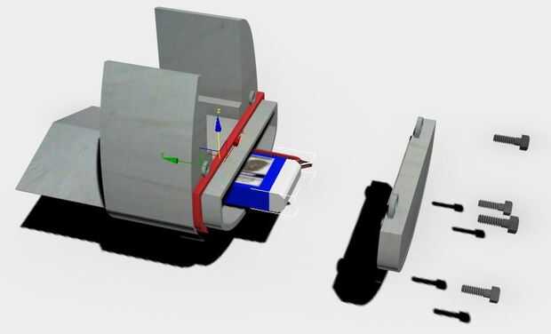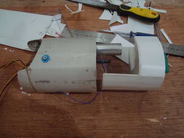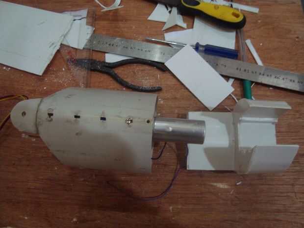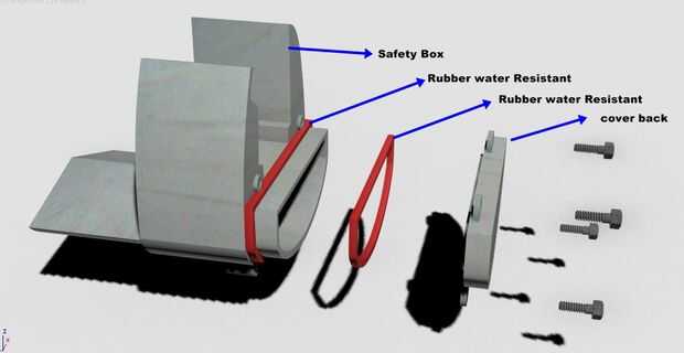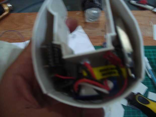 Caja de seguridad, esta caja es hermético que el sistema electrónico en ahorrar. Para hacerlo necesitamos el patrón el patrón obtenido desde el espacio de montaje en el cuerpo de los peces robot en el cuerpo del robot antes de hacer el patrón debe ser instalados todos los componentes que deben instalarse en el cuerpo del robot, como servo para aletas y lastre los tanques pic.no 2.