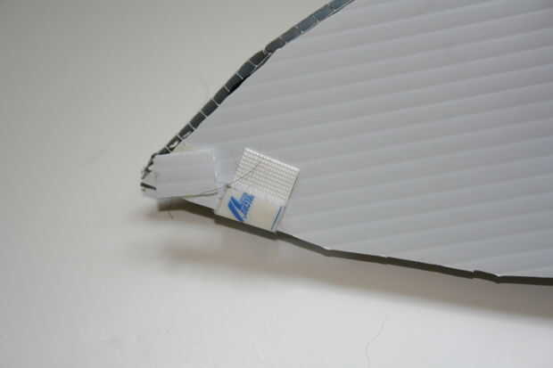 Inicio por caliente pegando un trozo de velcro en la parte trasera a la izquierda en la parte inferior de la base y uno en la parte delantera derecha. A continuación, caliente el pegamento dos 1 1/2" piezas de velcro en el interior de la cáscara para que se alinee con las piezas en la parte inferior de la base.
