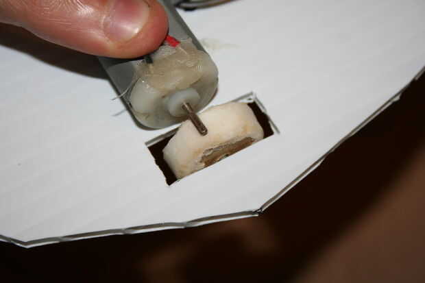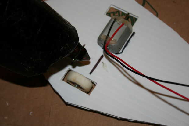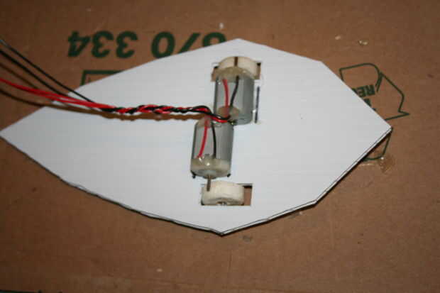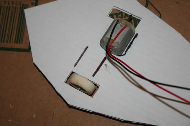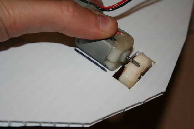 Primero coloque el motor en la base es paralela al eje y el eje se presiona firmemente contra una de las ruedas, luego marque su posición con un marcador y luego retire el motor de la base. A continuación se aplica pegamento caliente a la zona marcada y poner el motor detrás de donde estaba, repita para el otro lado.