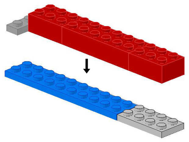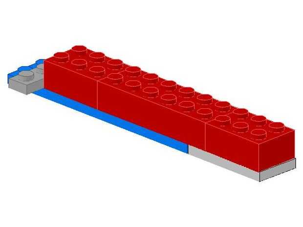 Línea de una placa de 2 x 10 y una placa de 2 x 4. Agregar una placa de 1 x 4, 2 x 3 ladrillo, un ladrillo de 2 x 6 y otro ladrillo de 2 x 3 en las placas.