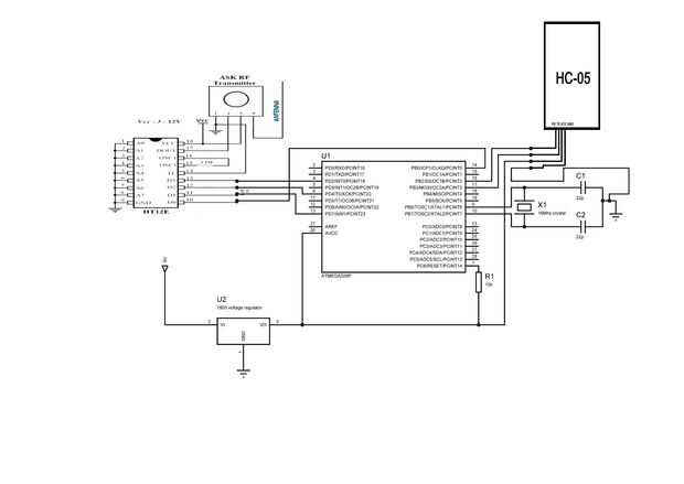 Los circuitos de emisor y receptor se muestran en la figura. Se ser adjuntando el código fuente pronto para el transmisor y el receptor ICs Atmega.