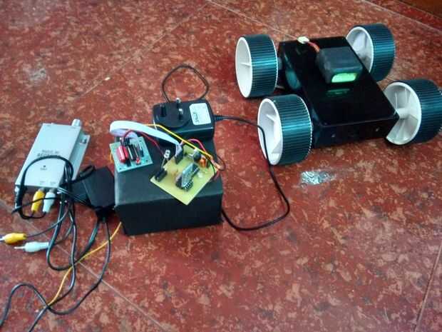 Habíamos comprado una cámara estenopeica inalámbrica de ebay junto con un adaptador usb para controlar los videos tomados por el robot en laptop. Puede conectarse a la TV también.