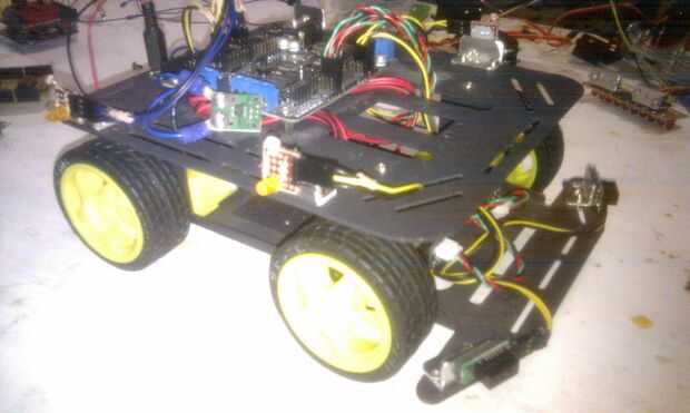 Compré 2 sensor de distancia - http://www.pololu.com/catalog/product/1134 . Utilizando dos de los soportes de montaje que hice y algunas doble cinta adhesiva une a la del robot, luego conectarse les digital pin 11 (izquierda) y el pin digital 10 (derecha). Estos sensores nos permitirá parar el robot ejecuta las cosas, también permitirá que el teléfono vibre cuando llegamos cerca de las cosas.