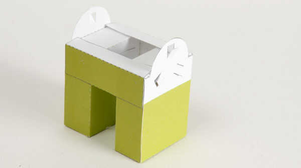 Doble ronda y pegamento juntos las dos piernas para hacer cajas rectangulares. Pegue el unidor de la pierna a una de las piernas como se muestra aquí.
