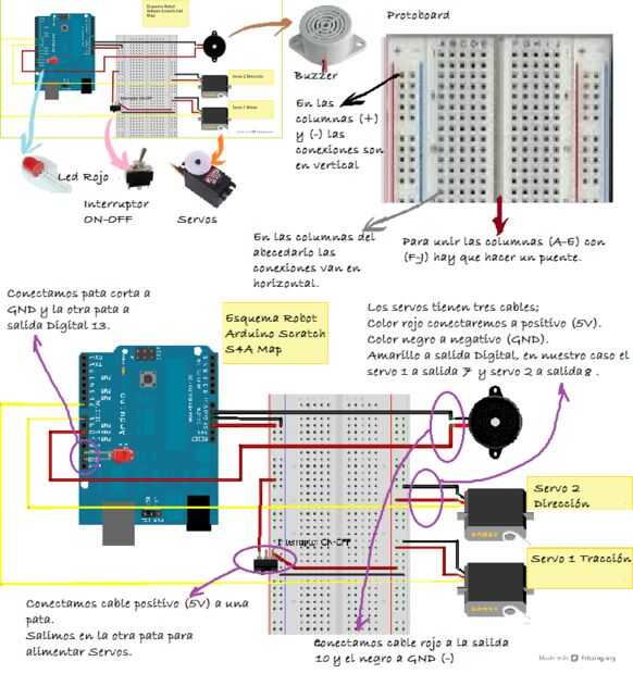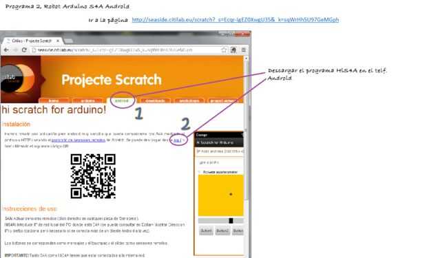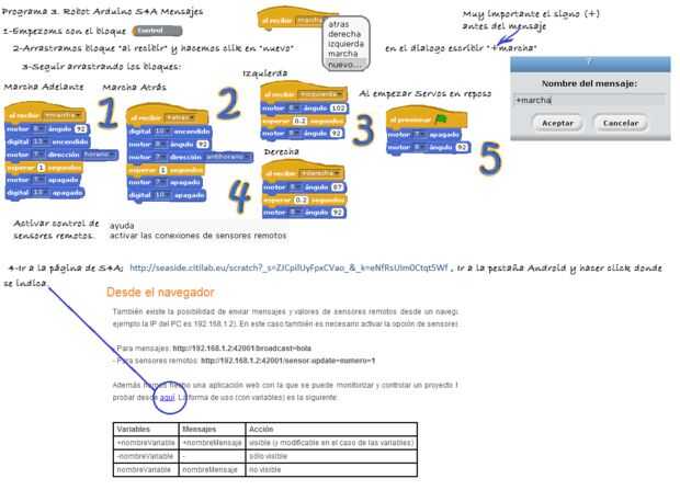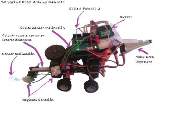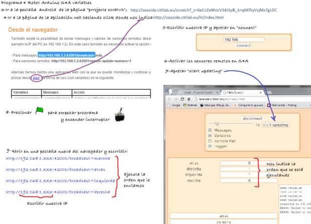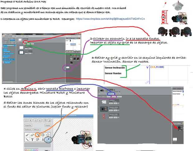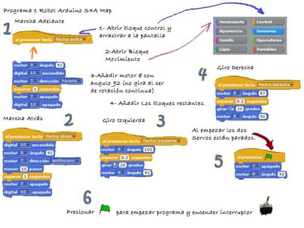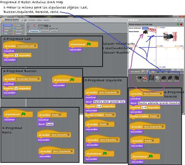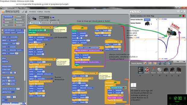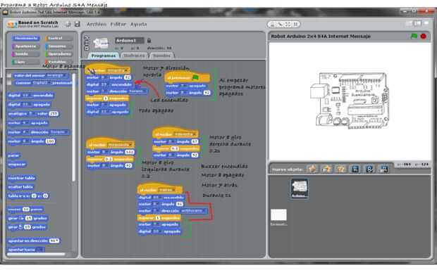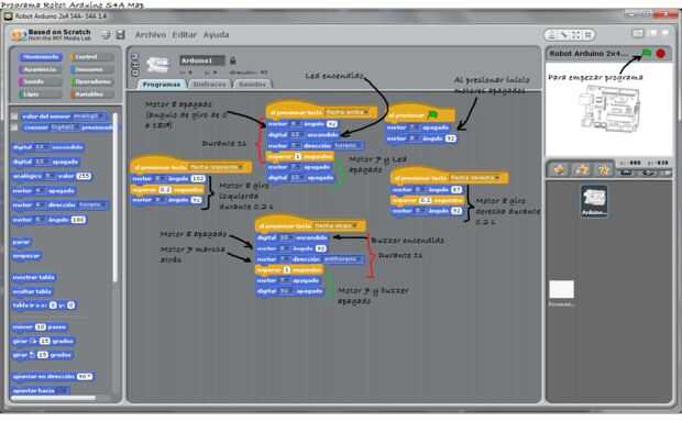 A este pequeño robot le vamos a hacer diferentes programas de forma fácil e intuitiva utilizando el programa gráfico S4A basado en la plataforma Scratch.