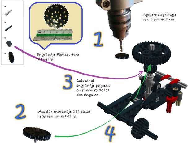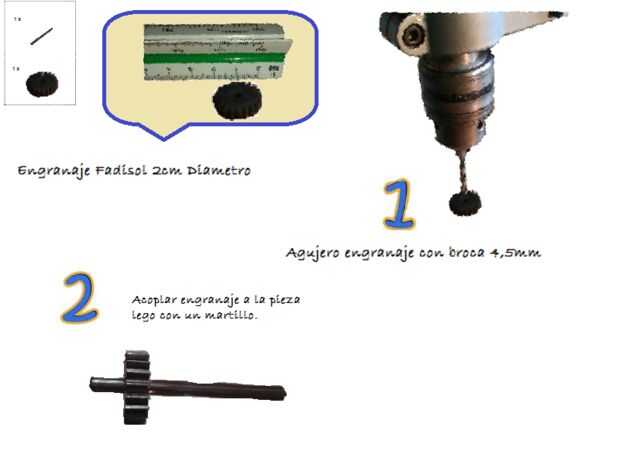 -El nivel de dificultad es bajo, no se traductor herramientas para su montaje (excepto dos agujeros en los engranajes las pueden hacer en cualquier taller o fácilmente en casa).