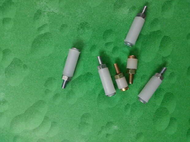 Separadores - es mejor usar éstos para separar lo PCB del chasis metálico. Estos no sólo dan un toque profesional con el producto final sino también ayudan en el encaminamiento de los cables en los espacios entre el tablero y el chasis.