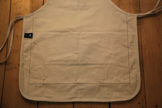 Tome una regla y marcar una línea recta alrededor de la parte inferior del faldón. (Sobre 2inches (5cm) a los lados, 3 1/2inches (8, 5cm) en la parte inferior.)