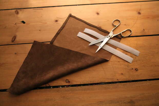 Tome un pedazo de cuero de chatarra y dos piezas que emparejan de velcro.