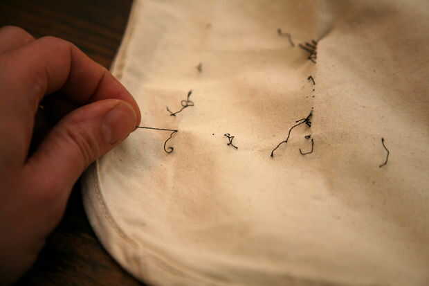 (Usted puede quitar los hilos restantes, pero realmente no afectar la funcionalidad de su delantal)