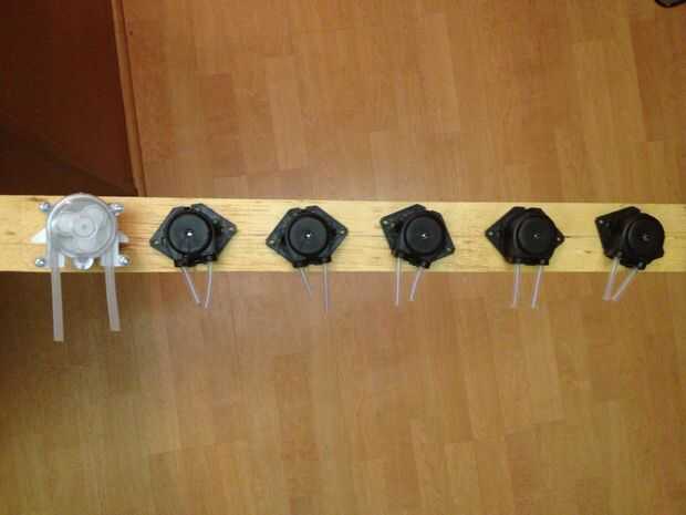 Pedí a dos tipos de bombas peristálticas, uno negro el otro claro, para probar la velocidad de flujo volumétrico antes de que compré el resto. Lamentablemente cometí el error de probar uno de ellos con las baterías que fueron incapaces de suministrar la corriente necesaria dando por resultado resultados inexactos. Debido a esto, el resto de las bombas que compré fueron más lentos los (negro).