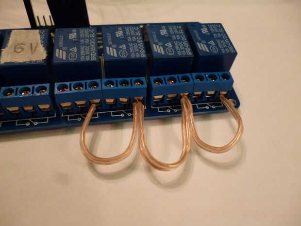 Alambre de la energía positiva de su convertidor buck al borne de tornillo neutral en el relé. Para relés que se se cambio la misma tensión, la mejor manera de alambre para arriba es encadenar los terminales de neutro como se muestra en la imagen. Sólo asegúrese de que el cable puede soportar el pasando actual a través de ellos. He hecho una especie de autobús de la energía en este prototipo, en vez de cadena tipo margarita.
