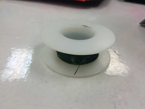 Conseguir el carrete de alambre de calibre 22, cortar en 4 trozos, cada uno de aproximadamente 4 pulgadas de largo. No dude en cortar más largo para alcanzar más en cualquiera de los extremos, nuestros son 6-8 pulgadas cada uno.