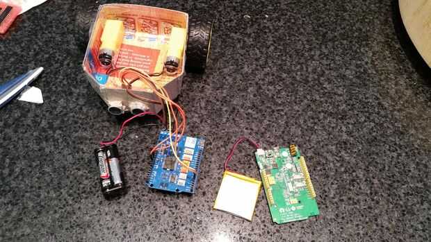 Las piezas son bastante sencillos. sólo un microcontrolador, conductor del motor, telémetro del sonic ultra, algunos motores y una caja de cartón.