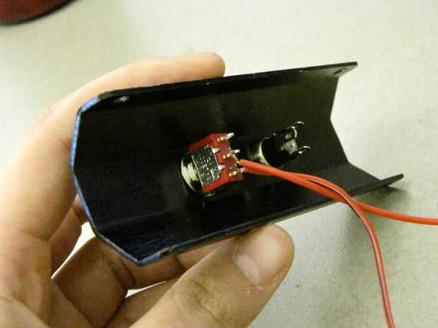 El interruptor tiene tres dientes en la parte posterior. Usted tendrá que soldar un cable rojo a la patilla central. Entonces puede soldar otro cable para clavijas de la parte superior o inferior. Que puntas utilizas no importan, siempre y cuando usted pone el interruptor en la placa trasera en la orientación que desee. Decidir cómo desea que su conmutador para trabajar (generalmente la orientación hacia arriba es "on" y es "off") y use un multímetro para ayudarle a determinar qué configuración le dará los resultados deseados.