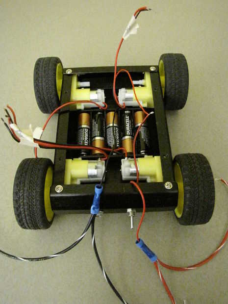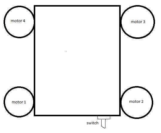 Montar el cuadro uniendo la parte delantera y traseras placas y las placas laterales con los tornillos. Utilice cinta adhesiva para etiquetar todos los cables. Utilizamos esta orientación a los motores (ver diagrama).