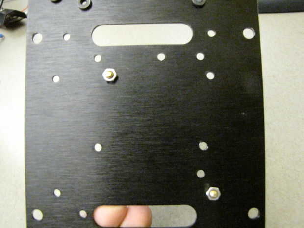 Dos de los separadores más cortos en el juego y colocarlos en los agujeros que está utilizando. Tomar dos tuercas y tornillos en los soportes desde el otro lado de la placa.