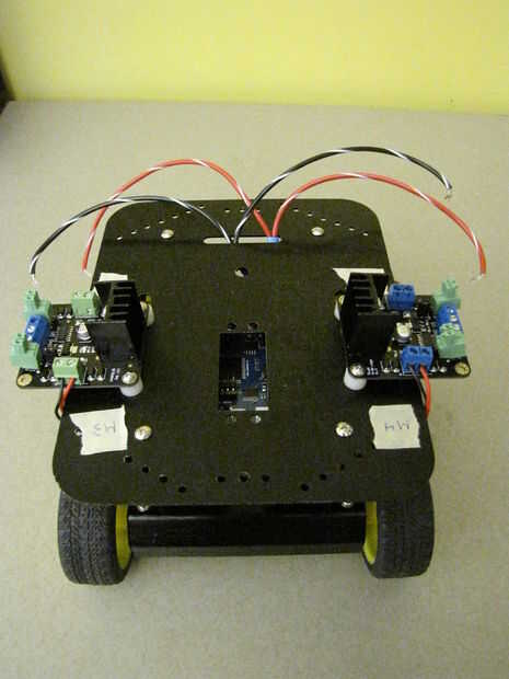 Tomar los cables para los motores y tornillos en las terminales. No importa que color atornille en el más y menos caras; por ahora, atornillar en y usted puede cambiarlos después de probar el código y ver si los motores impulsión cuando dices que impulsar.