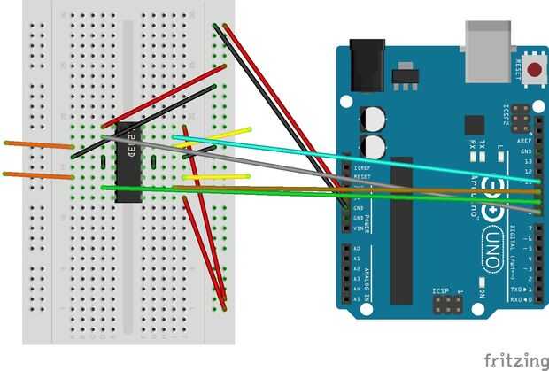 Pernos de 2,7 (para motor izquierdo) del L293D para pines 9,8 en Arduino.