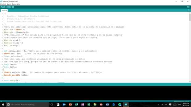 Ya tenemos casi todo listo, robot de la nuestro solo nos falta Donalda el "cerebro" de. La mejor forma de entender el código está es viendo cada detalle en el codigo. Por eso, aquí les adjunto el código escribí. Cada parte está sumamente comentada para vovere a intentar explicar todo de la mejor manera y el código en si está escrito buscando claridad principalmente. Cual duda o sugerencia, no duden en dejar un comentario.