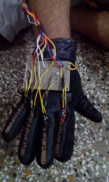 Tome eso lecturas de divisor potencial como un analoginput y hacer esto con todos los cinco dedos. Después de hacer ver el valor de análogo leer en el monitor serial y manipular según el requisito. Los cinco dedos que usamos contiene un sensor flex, nos podemos fijar correctamente por costura correcta. Tomar las cinco lecturas conectan a los pines analógicos cinco.
