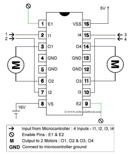 Sabemos que los motores trabajarán en 12v, por lo que necesitamos conectar el L293D con el bot para vincular los motores con edison de Intel. Puedes ver el esquema del L293D en las fotos dadas. para más información: controlador de MOTOR.