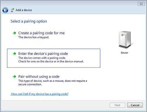 Se le pedirá que seleccione una opción de sincronización. Seleccione la opción "Enter el dispositivo emparejado código"