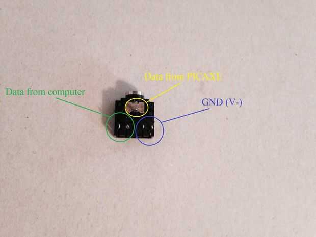 Para programar el chip PICAXE, tendrá que conectarse a un ordenador. Esto es donde entra el cable de programación serial. El cable conecta el PICAXE por medio de un conector de 3,5 mm, el mismo tipo como la mayoría de dispositivos de audio. El cable de programación es no destinado a ser conectado a un dispositivo de audio; Nunca utilice el cable para programación o comunicación con un PICAXE.