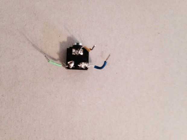 Al soldar los cables en las clavijas, asegúrese que los pernos agrupados entre sí se sueldan al cable, es decir, el izquierdo dos clavijas deben tanto soldar el cable verde y los derecha dos pasadores deben ambos ser soldado al cable azul.