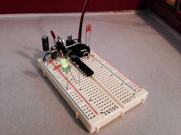 En este punto tenemos el software y el hardware... pero no sabemos si el PICAXE funciona o no! La solución simple es escribir un programa de "blink" que enciende y apaga un LED. Si te gusta la programación, el sitio web de PICAXE tiene un montón de documentación para escribir su propio programa blink. Si desea ejecutar un robot, descarga el archivo adjunto y ábralo con su editor PICAXE. Luego enchufe el cable de programación.