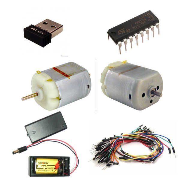 - 1 x batería de 9 voltios recargable y su conector (para los motores)