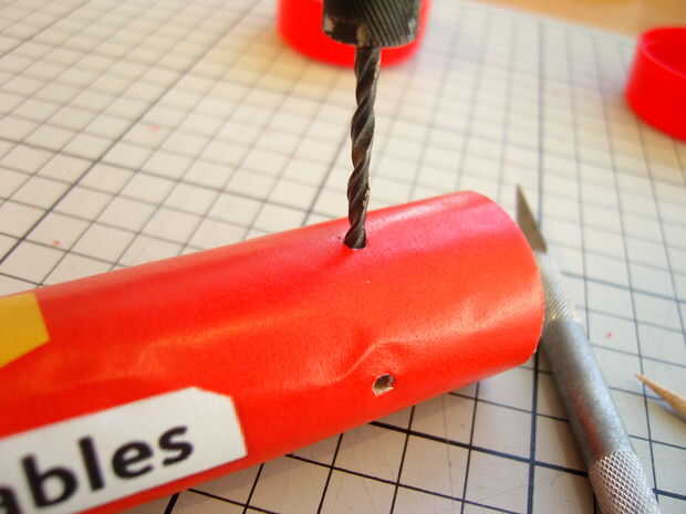 1 cortar otra pequeña sección de tu pincho, (mismo tamaño que la altura del tubo)