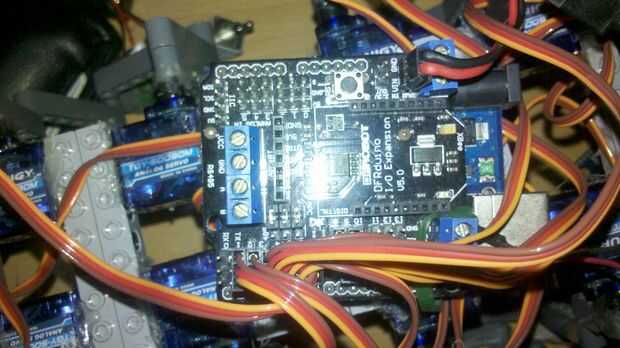En cuenta que si programación arduino cuadrúpedo, asegúrese de que quitar lo Xbee de la Junta de expansión de DFRobot V5.0. (energía y conexiones de servo son generalmente bien permanecer conectado).