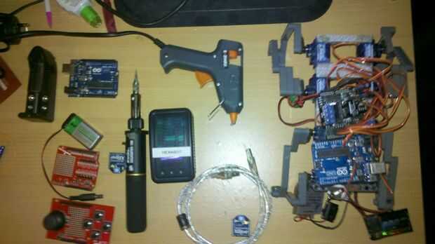 X 1 tarjeta de expansión de DFRobot V5.0 (elemento superior) a esta unidad se conecte todos los servos y poder