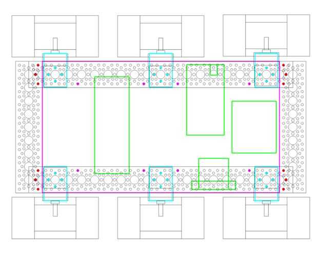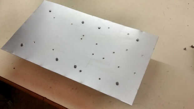 -Taladre 8 de 3mm de diámetro en la placa de aluminio como se puede ver en la imagen. (puntos de magenta).