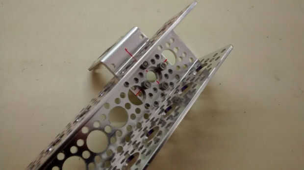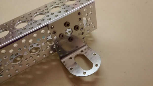 -Taladro en el motor monta los agujeros de diámetro de 3mm que necesita para poder atornillar el canal de aluminio como se puede ver en la imagen (puntos de luz azul).