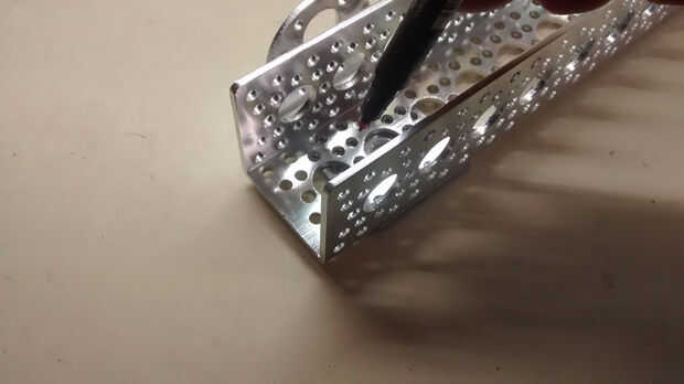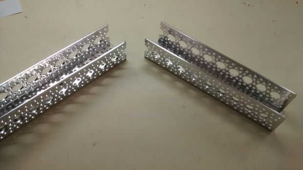 -Uno de los tres canales de aluminio de 15" en dos piezas de 7 1/2" con un pequeño metal Sierra.