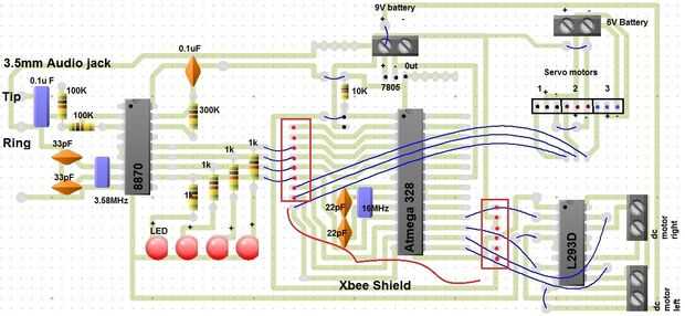 Utilizar imágenes para seguir todos los procesos y la posición de cada componentes. Siga el diagrama del circuito para hacer tu propio PCB. Si estamos usando Arduino UNO en el lugar del propio hecho breakout junta entonces sólo Atmega 328 sección de controlador Haz descuidado resto de conexiones son las mismas y conectan el Arduino UNO.