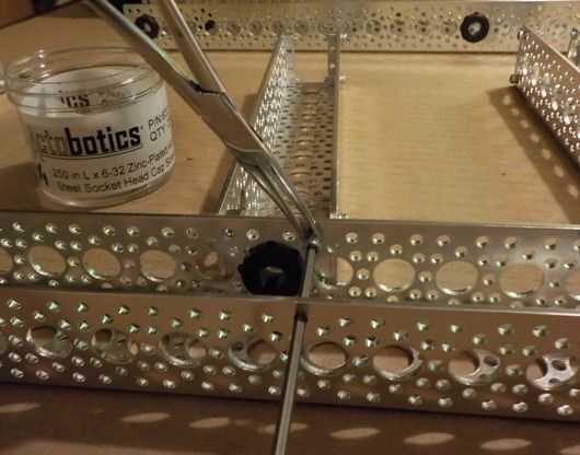 Los canales 9 de tres pulgadas con los puntos de sujeción alienígena centraron en los ojales en el canal de 18 pulgadas, conecte con el 1/4 pulgadas tornillos de sombrerete de cabeza hueca.