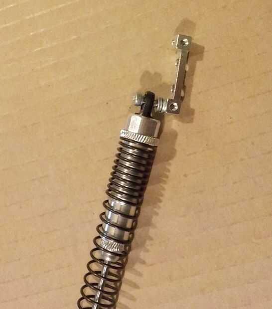 En lugar de 4 golpes un tornillo 7/16 a través de la parte superior de la descarga, coloque una arandela #6, #6 arandela y otra arandela #6 entonces conectan a 90 grados doble montaje lateral D. en la parte inferior de la descarga 7/16screw a través de enlace de bola y a un enfrentamiento de 1/2 pulgada.