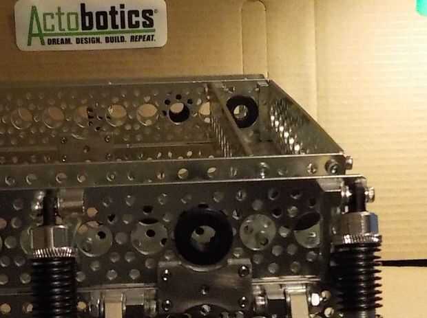 Conectar con 2, 1/4 pulgada L x 6-32 tapa de tornillo de cabeza hueca un choque con 90 grados doble lateral Montaje D hasta la fila superior de los agujeros en el chasis en el orificio 2 del extremo, al colocar el ensamble de descarga, asegúrese de la bola de choque sobre el agujero 1 º en la fila superior.