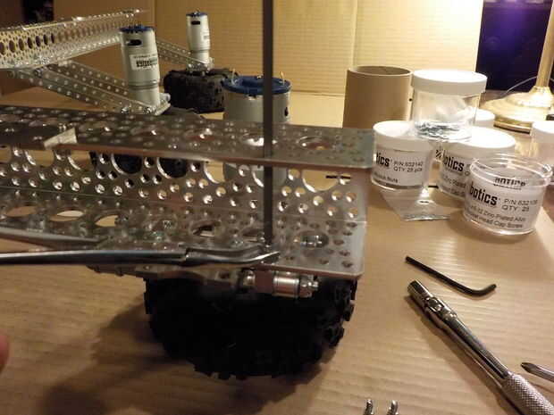 Coloque la rueda y el ensamblaje de Strut en el carril del canal.