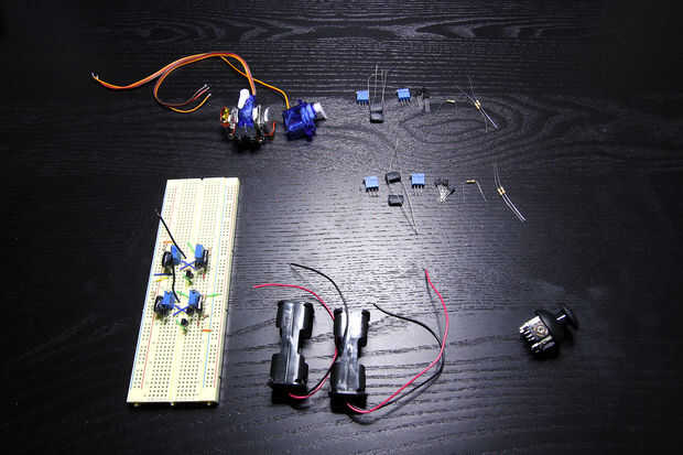 Usted también necesitará dos servos micro analógicos como la torre Pro SG90 y un puñado de componentes electrónicos.