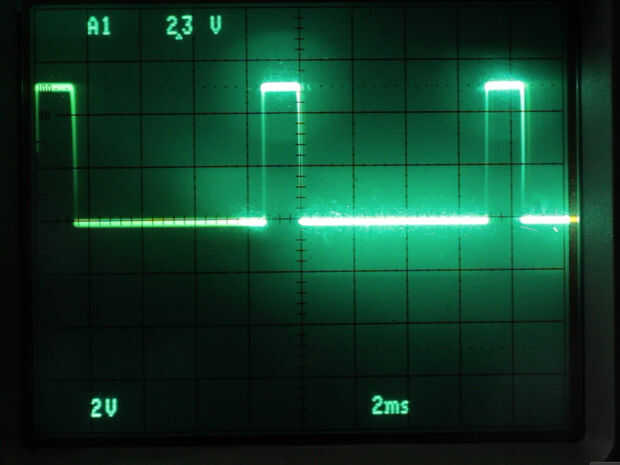 Descubrí que cuando el condensador en este circuito de 220 nF, las resistencias deben ser 5 – 15k para el ms 1-2 en el tiempo y 48k para unos 8ms de tiempo. Ahora, en total, 10 ms o frecuencia de 100 Hz, que es mucho mayor que la frecuencia de operación indicada para los servos, pero encontré estos valores a través de ensayo y error y trabajan para mí.